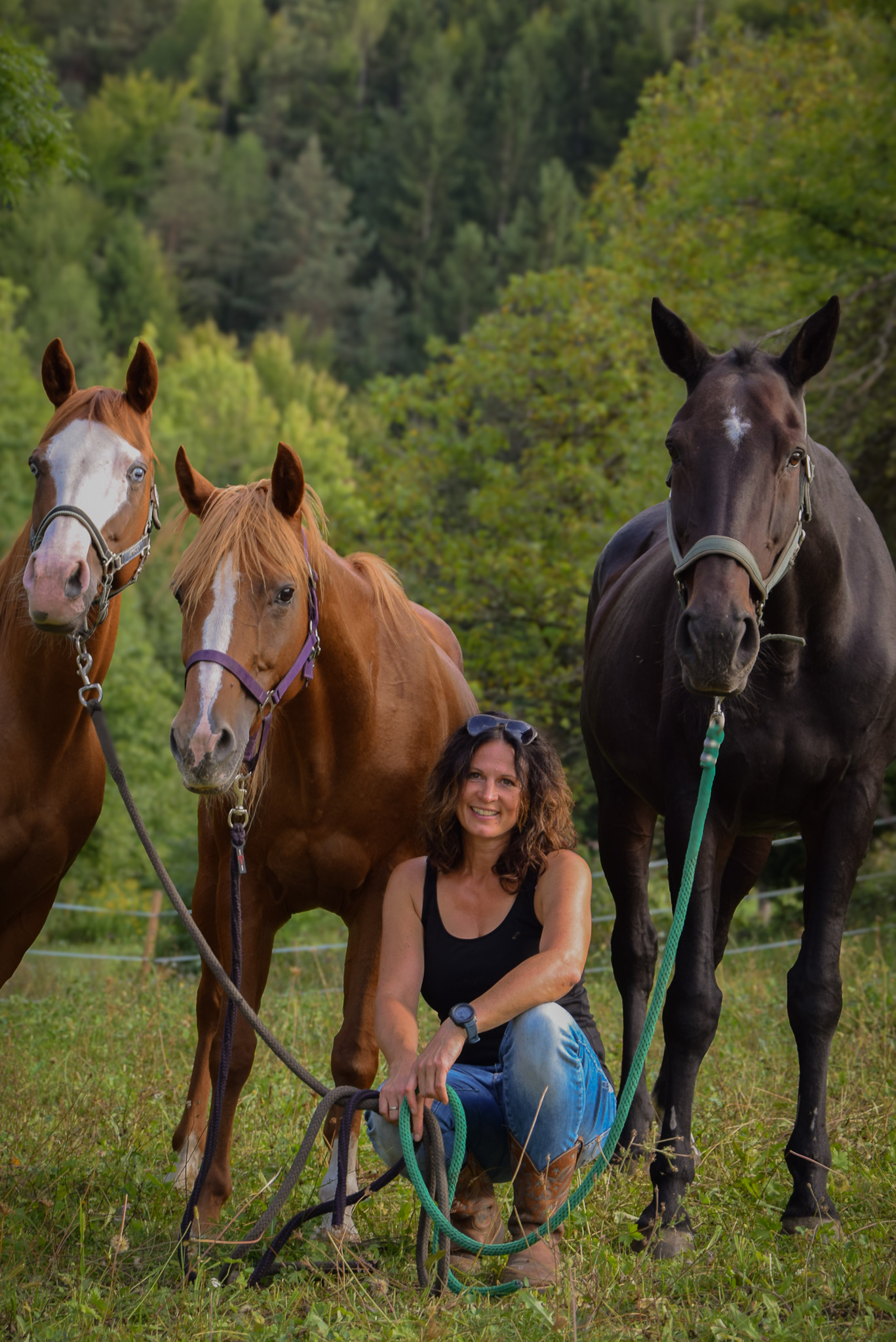 Meine Pferde Siena und Indy (und ihre große Freundin Zsa Zsa) – meine langjährigen, achtsamen Wegbegleiter.